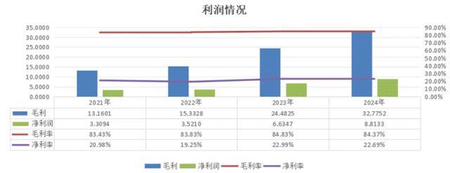 毛戈平交出的成绩单羡煞旁人。2024年,毛戈平实现营收38.85亿元,同比增长为34.61%。同期,其利润率达到84.4%,在已上市化妆品企业中,这一水平仅次于主要做医美产品的锦波生物(92%)。